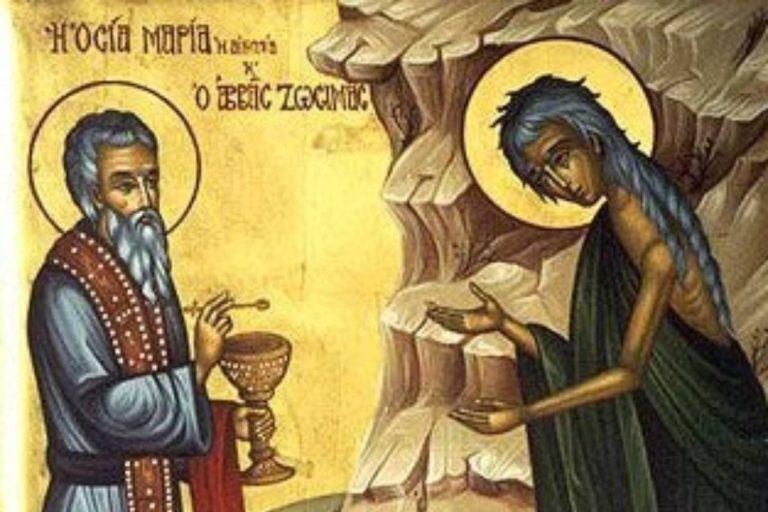 Zosimo, ieromonaco in una laura del Giordano, le portava la comunione presso il fiume Giordano, dove era stato battezzato il Signore, e qui un giorno Zosimo, trovandola morta, la seppellì con l’aiuto di un leone. Era l’anno 522. Nelle Chiese bizantine Maria Egiziaca è ricordata come la penitente per eccellenza. In Occidente è festeggiata il 1 aprile, mentre la chiesa copta la ricorda il 14 aprile.
