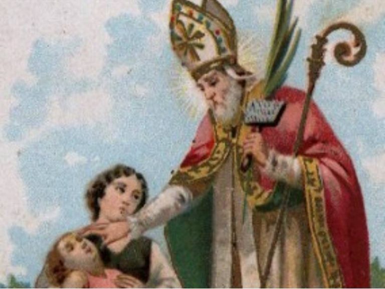 Le notizie storiche di san Biagio sono molto scarse. Si sa che era di origine armena e fu eletto vescovo di Sebaste. Infierendo la persecuzione di Licinio, Biagio ritenne prudente lasciare la città e rifugiarsi in una grotta nascosta nella boscaglia, ma l’andirivieni delle persone che lo cercavano rese ben presto noto a tutti il suo nascondiglio. Condotto in città, per ordine del governatore Agricola, fu imprigionato, ma anche nella prigione riceveva e sanava molti ammalati. Un giorno si recò da lui una madre il cui figlio stava morendo soffocato, per aver ingoiato una spina di pesce: Biagio lo benedisse e lo risanò immediatamente.