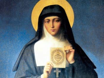 Margherita nasce a Verosvres (in Borgogna ) nel 1647 da una famiglia della media borghesia. A 24 anni entra tra le visitandine di Paray-le-Monial. È nel semplicissimo quadro del chiostro della Visitazione che si svolgono le principali tappe dell’ascesi spirituale di Margherita. Nel 1672, pur sentendosi inadatta alla vita di questo monastero per le difficoltà che incontrava, fa la sua professione religiosa incoraggiata dal Signore stesso. Il 27 dicembre del 1673, festa di san Giovanni evangelista, mentre si inginocchiava nella cappella del convento, ha la prima apparizione di Gesù che l’invita a porre il suo capo sul proprio cuore, come fece Giovanni nell’ultima cena, annunciandole che l’aveva scelta quale apostola della devozione al sacro Cuore “che ha tanto amato gli uomini”.