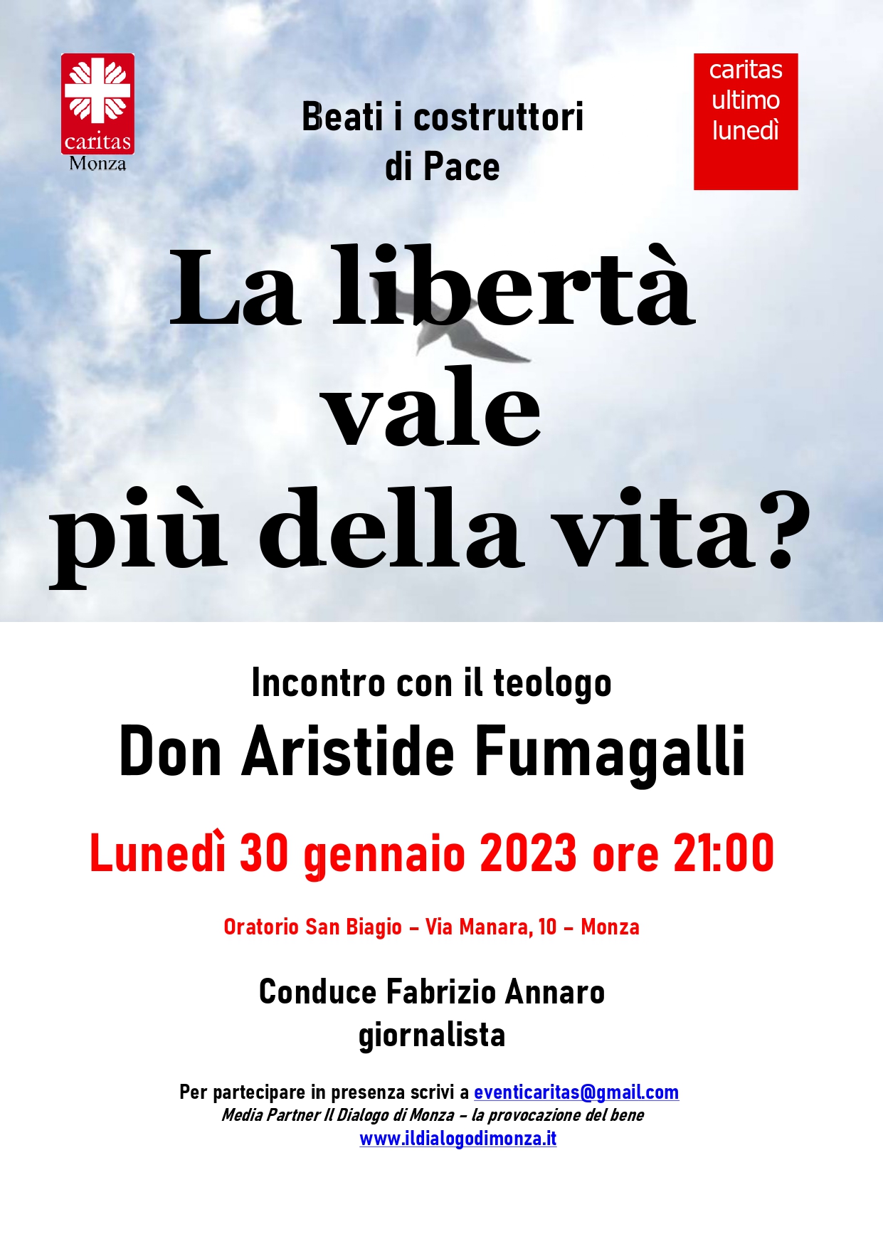 Il cammino proposto da Caritas di Monza inizierà lunedì 30 gennaio ore 21 con l’intervento del teologo don Aristide Fumagalli che cercherà di rispondere all’impegnativa domanda: “La vita vale più della libertà?”