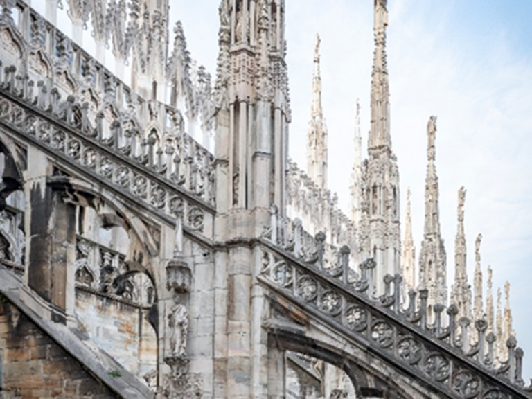 Le Terrazze del Duomo di Milano, sono un unicum nel panorama italiano. Come stalagmiti di pietra innalzate in tensione verso il cielo, le guglie svettano dalla splendente Cattedrale marmorea. Ogni dettaglio architettonico e decorativo, strutturale o ornamentale, porta con sé un’eredità dettata dalla tradizione scultorea tramandata dalla maestria degli scalpellini che nel laboratorio marmisti dedicano sapienza e cura ad ogni manufatto.