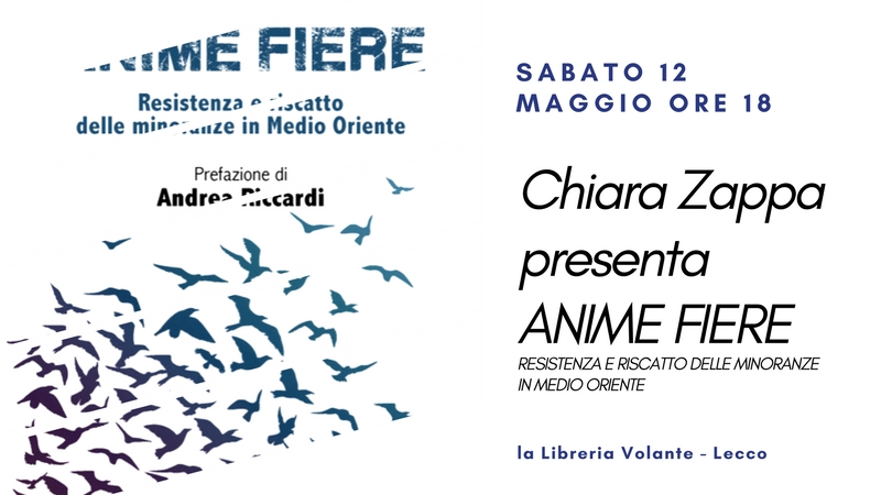 Sabato 12 maggio, alle 18, Chiara Zappa, giornalista esperta di politiche e culture del Medio Oriente. presenta il suo ultimo libro “Anime fiere. Resistenza e riscatto delle minoranze in Medio Oriente” (Edizioni Terra Santa) alla Libreria Volante di Lecco, sua città natale.