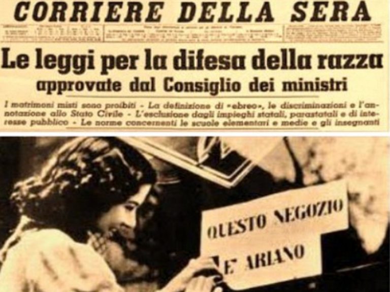 Le leggi razziali del 1938 volute dalla Stato Italiano furono precedute nel luglio dello stesso anno dal “Manifesto della Razza” firmate da personalità della cultura e docenti universitari che evidenziava l’esistenza delle diverse razze su una base puramente biologica decretando la superiorità della pura razza italiana di cui gli Ebrei erano esclusi. Furono emanate in pochi mesi diverse leggi, decreti e norme fortemente antisemite che vietavano agli Ebrei di sposarsi con cittadini italiani e stranieri, di insegnare o frequentare le scuole, di operare nell’impiego pubblico, nelle aziende, banche e assicurazioni di interesse nazionale, di possedere beni immobili e condurre attività di una certa dimensione. Leggi discriminatorie che gettarono, da un giorno all’altro e fra l’indifferenza generale della popolazione, nella miseria e nello sconforto migliaia di persone pacifiche ed operose fino ad allora ben integrate nella nostra comunità e rappresentano una delle pagine più vergognose della storia civile e democratica del nostro Paese.