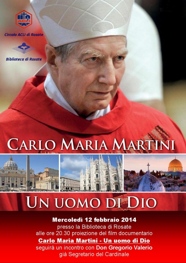 Il Circolo Acli di Rosate organizza per mercoledì 12 febbraio una serata per ricordare la figura del cardinale Carlo Maria Martini con la proiezione del film documentario "Carlo Maria Martini – Un uomo di Dio" di Salvatore Nocita e con la testimonianza di don Gregorio Valerio, segretario di Martini dal 1996 al 2002.