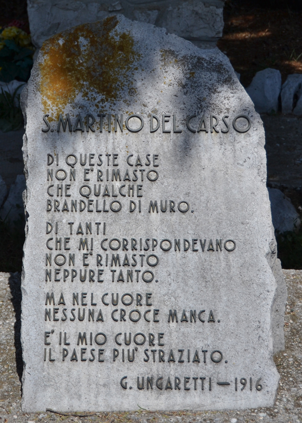 Fu proprio qui, in questo anno di guerra, che il giovane fante Ungaretti trovò ispirazione e compose alcune delle Poesie del Porto Sepolto. ln seguito, la stessa zona si trasformò in retrovia di rifornimento e di accampamento militare per il fronte che avanzava verso Caporetto.