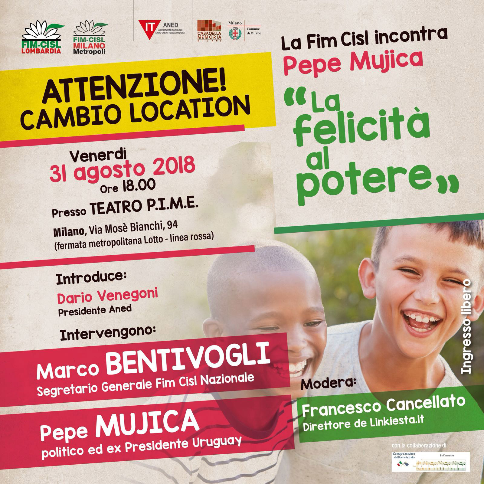 “La felicità al potere”: questo il titolo dell’incontro, organizzato dalla Fim di Milano e Lombardia, fra l’ex presidente dell’Uruguay Pepe Mujica e il leader del sindacato dei metalmeccanici della Cisl, Marco Bentivogli.