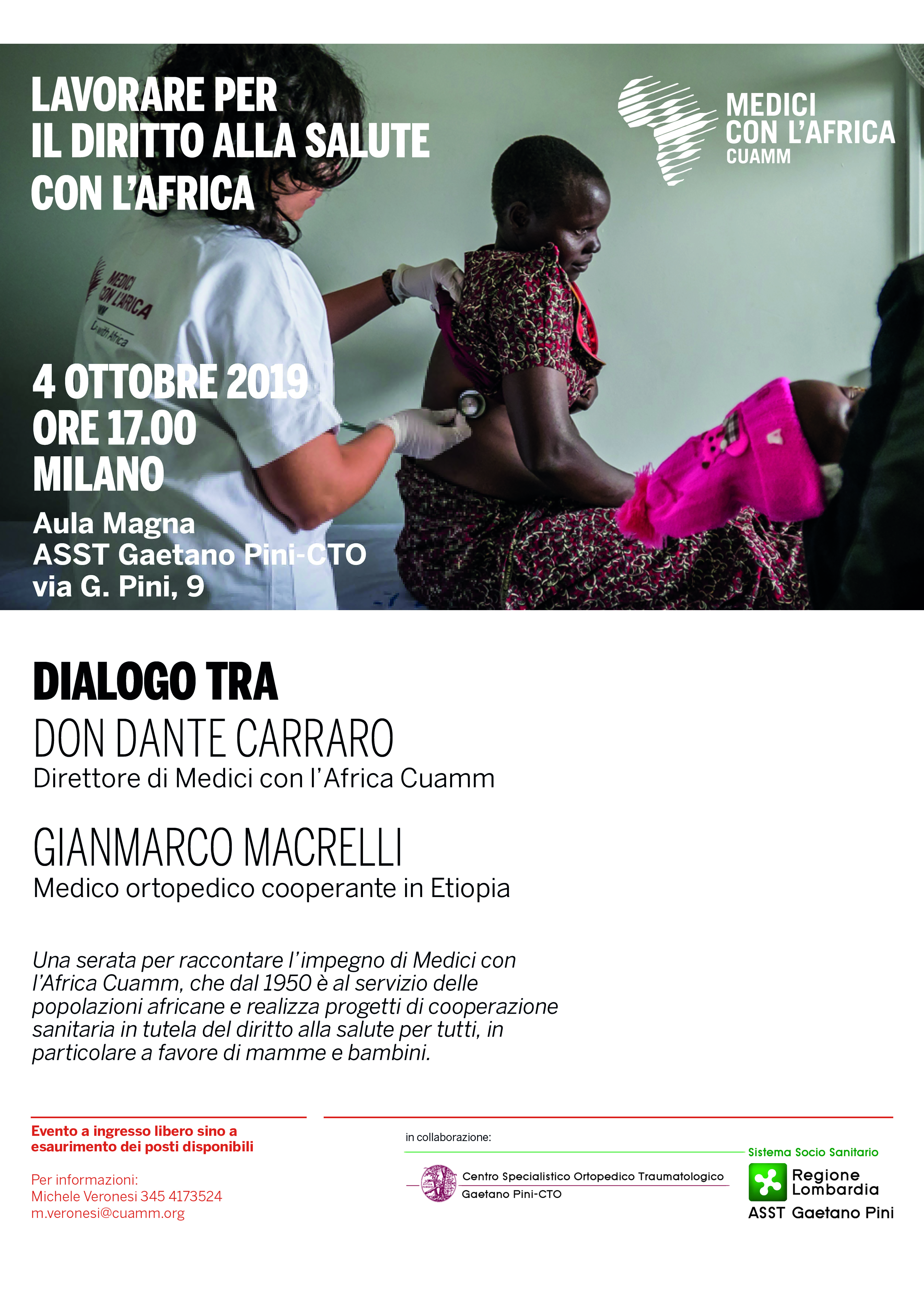 Venerdì 4 ottobre, alle 17, nell’Aula Magna del Gaetano Pini di Milano, don Dante carraro, direttore di Medici con l’Africa Cuamm dialogherà con l’ortopedico Gianmarco Macrelli, medico cooperante in Etiopia.