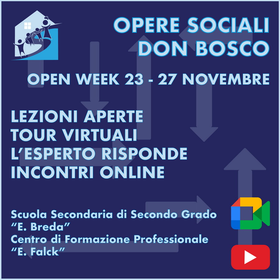 Dal 23 al 27 novembre le Opere Sociali Don Bosco si aprono (non ancora in presenza ma in modalità digitale e on-line) alle famiglie e ai ragazzi che vogliono saperne di più.