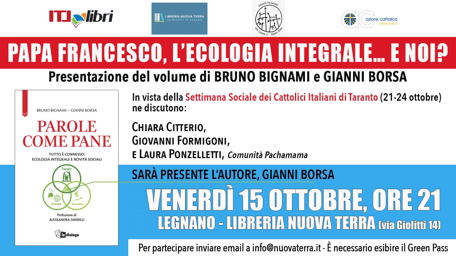 In vista della Settimana Sociale dei Cattolici Italiani di Taranto sul tema «Il Pianeta che speriamo. Ambiente, lavoro e futuro. #Tuttoèconnesso» venerdì 15 ottobre alle 21.00 presso la Libreria Nuova Terra di Legnano si terrà la presentazione del volume “Parole come pane” Tutto è connesso: ecologia integrale e novità sociali.