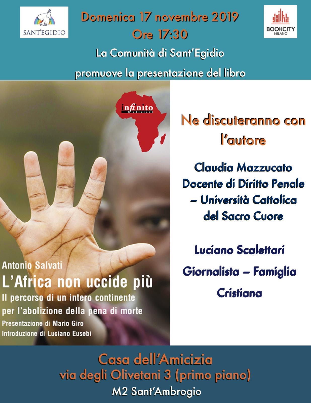 di un intero continente per l’abolizione della pena di morte” di Antonio Salvati (Infinito Edizioni, 2019) con Claudia Mazzucato, docente di Diritto penale all’Università Cattolica, e Luciano Scalettari, giornalista di Famiglia Cristiana.