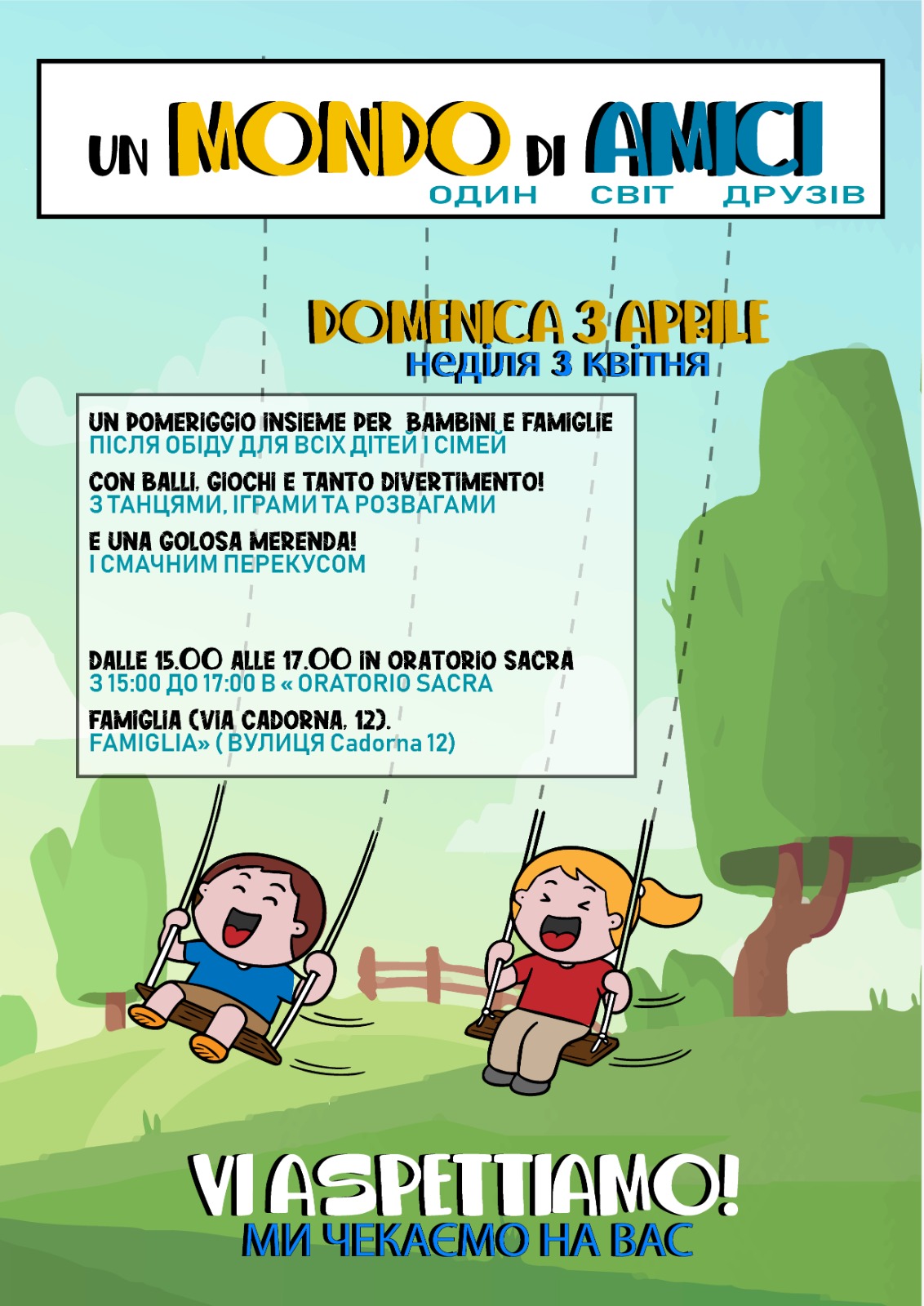 Domenica 3 aprile dalle ore 15 alle 17 in oratorio Sacra famiglia gli adolescenti della Comunità Pastorale di Magenta organizzano un pomeriggio di incontro, di gioco e di conoscenza aperto a bambini e famiglie ucraine, italiane e di ogni Paese.