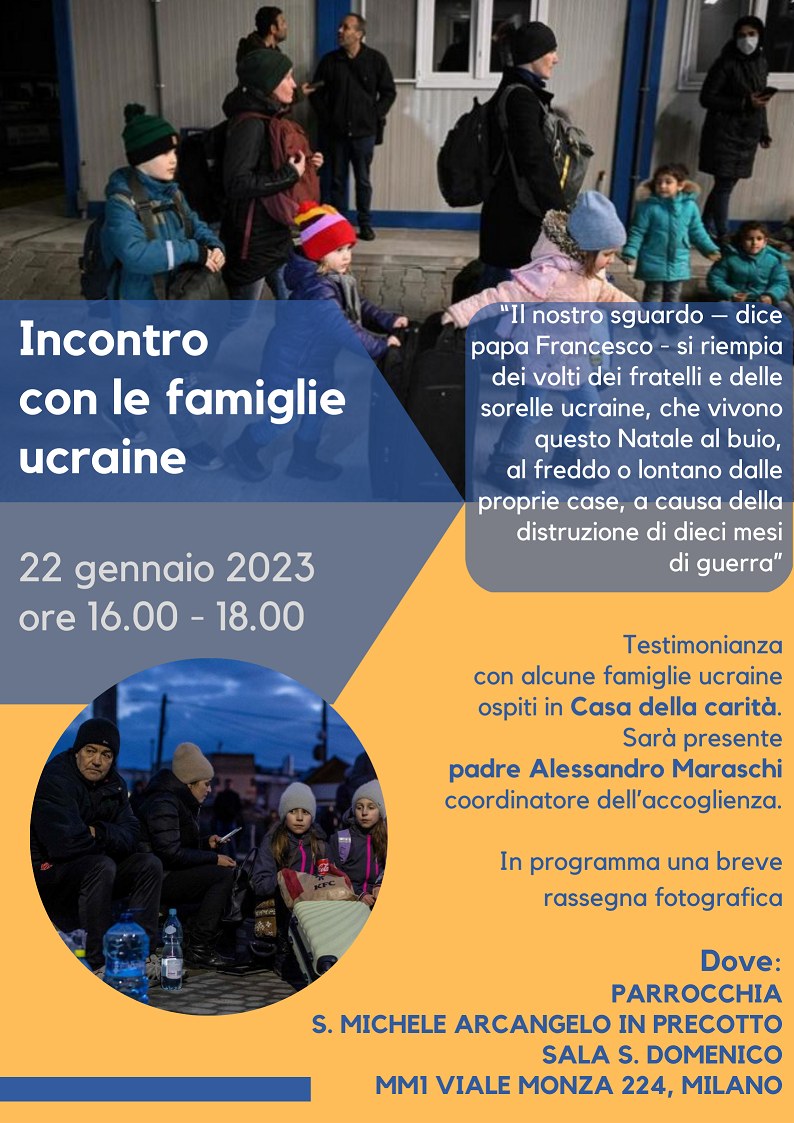 Domenica 22 gennaio, dalle 16 alle 18, la parrocchia San Michele Arcangelo di Precotto, organizza una giornata di incontro con le famiglie ucraine ospiti della Casa della Carità.