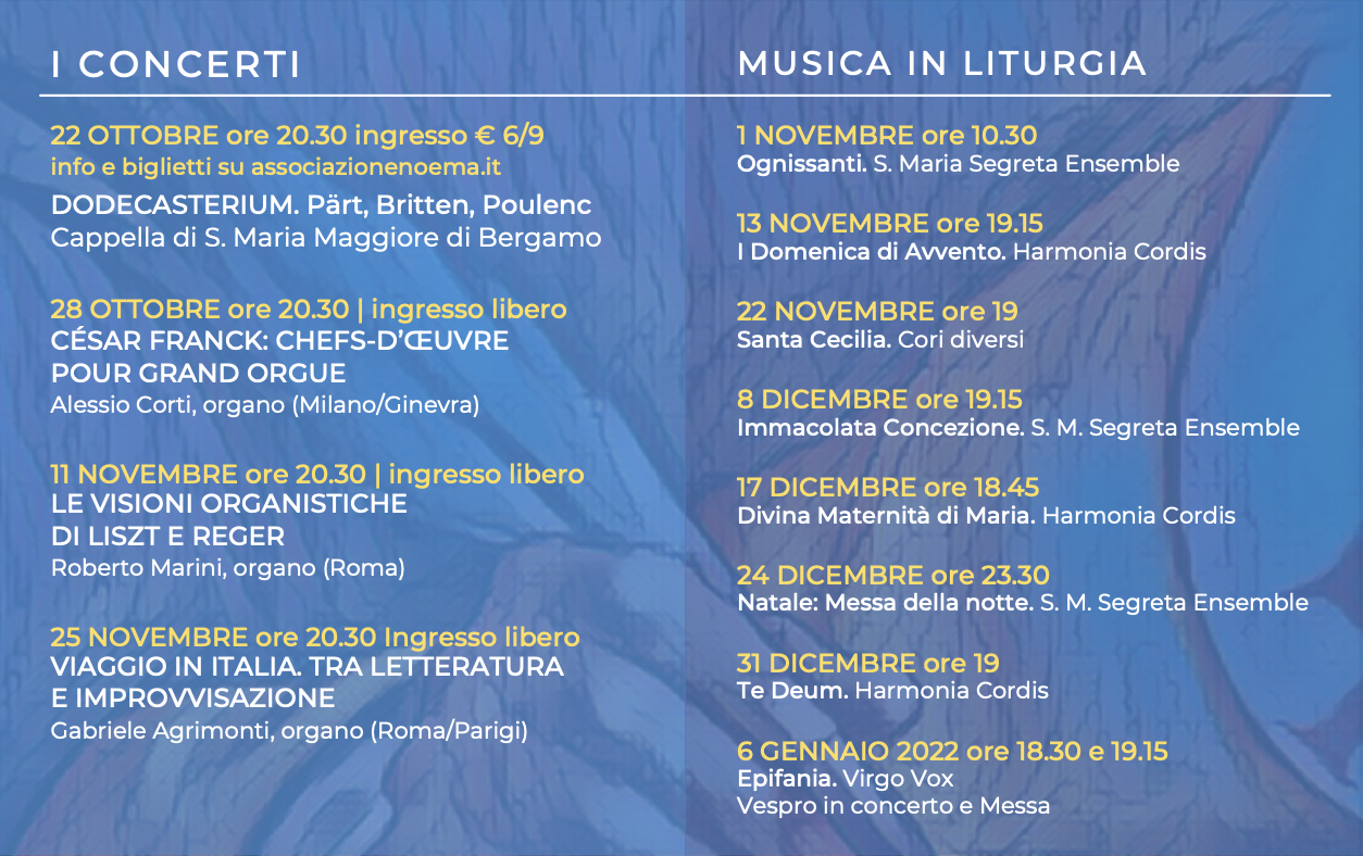 «Musica eterna. Cultura, fede, bellezza» è il titolo del nuovo ciclo di concerti d’organo con musicisti di fama internazionale promosso dalla parrocchia di Santa Maria Segreta a Milano in collaborazione con l’associazione Noema.