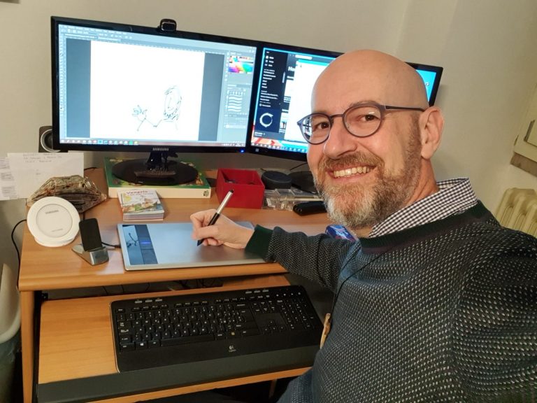 «Fin da piccolo mi sono divertito a disegnare – afferma Gioba –. Era un modo per giocare con la fantasia e crearmi un mio mondo fantastico. Durante il liceo ho iniziato a fare qualche piccola caricatura a insegnanti e compagni di classe. Poi pian piano mi sono messo a disegnare semplici vignette sulla vita di classe e sugli stessi professori. Una passione proseguita anche negli anni del seminario. Diventato prete non ho smesso di mettere su foglio di carta i miei sorrisi, pensando a situazioni più o meno buffe che possono nascere nella vita di Chiesa. Le stesse pagine del Vangelo sono fonte di ispirazione: un messaggio sempre profondo, umano e spirituale, che cerco di raccontare anche con le mie vignette».