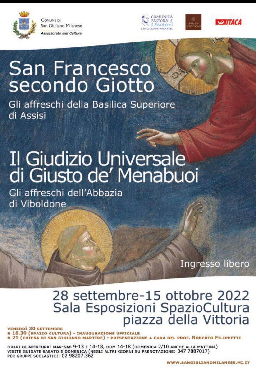 Il via sarà dato il 28 settembre con l’apertura della mostra “San Francesco secondo Giotto” nella Sala espositiva di spazio cultura in piazza della Vittoria. L’inaugurazione vera e propria sarà venerdì 30 settembre alle 18.30 a cui alle 21, nella chiesa di San Giuliano Martire sempre in piazza della Vittoria, seguirà un approfondimento sulle opere di Giotto da parte del prof. Roberto Filippetti, storico dell’arte e curatore della mostra.