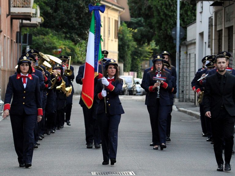 con la bocca spalancata al passaggio delle Bande – si sono radunati in piazza Mercato e poi in Parata hanno marciato tutti insieme verso piazza Maggiolini dove il Presidente don