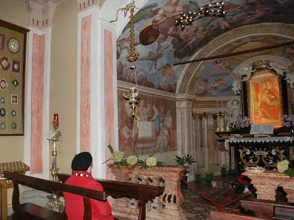 Fedeli in preghiera davanti al secolare dipinto mariano per chiedere il dono della maternità