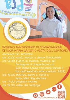 Quest’anno oltre a essere la festa che apre ufficialmente le celebrazioni per il #50esimo ci sarà anche l’occasione di celebrare i cinquanta anni di consacrazione di Suor Maria Grazia.