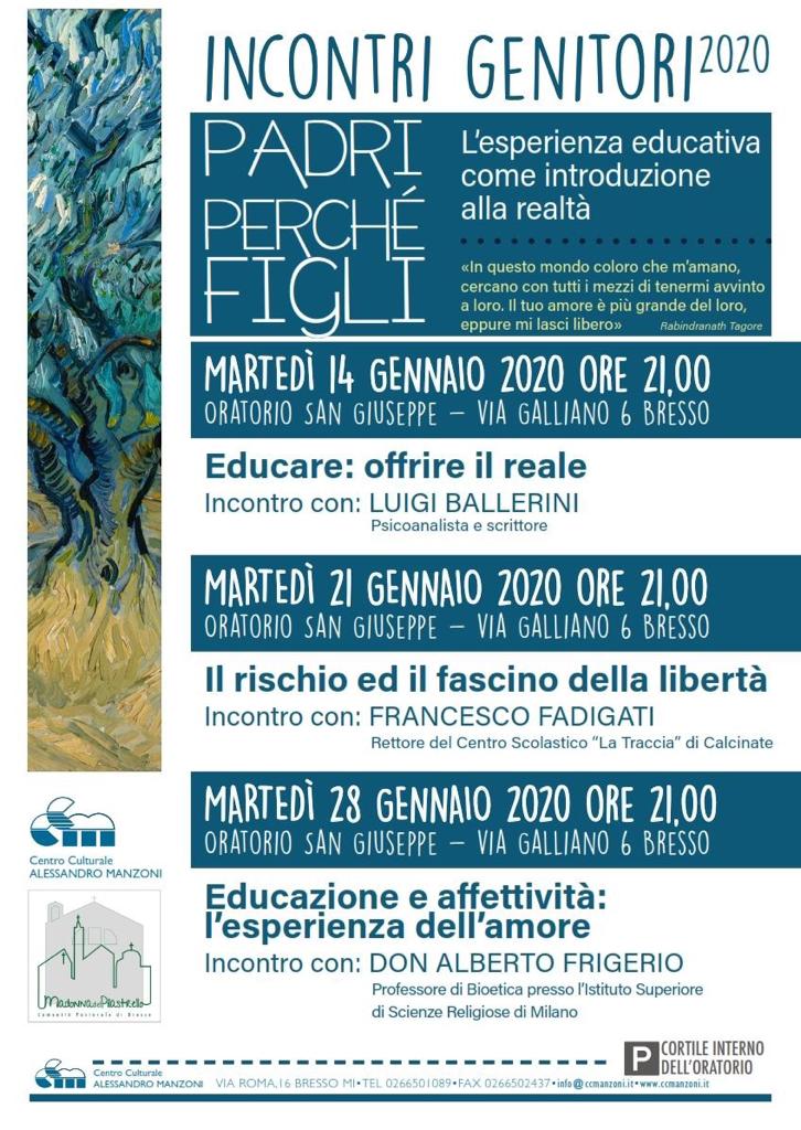 Dopo l’incontro con lo psicologo e scrittore Luigi Ballerini, martedì 21 gennaio Francesco Fadigati (Rettore del Centro scolastico “La Traccia” di Calcinate) proporrà una riflessione sul tema “Il rischio e il fascino della libertà”.