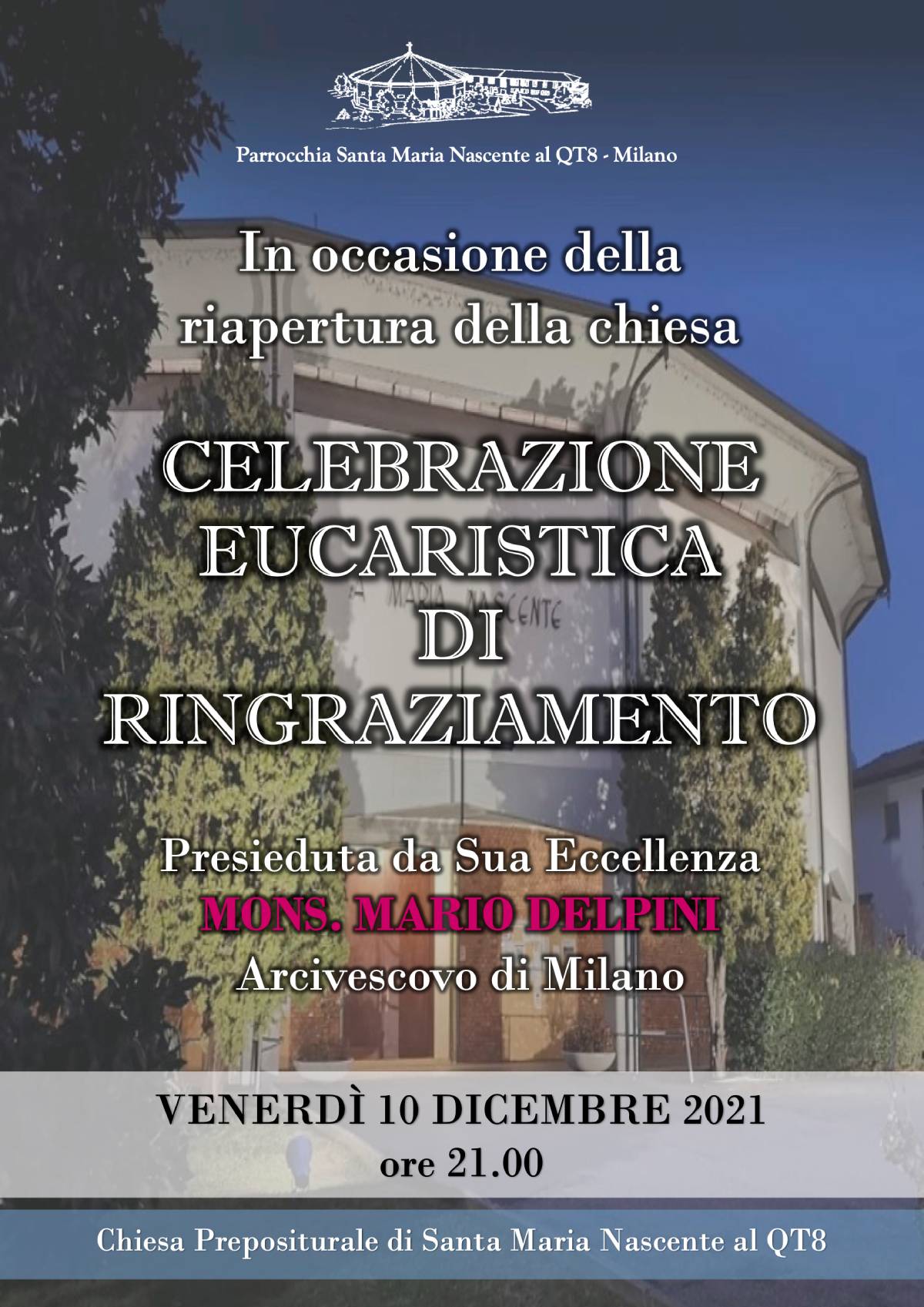 Venerdì 10 Dicembre, alle ore 21.00, sarà presente in parrocchia l’Arcivescovo di Milano, Mons. Mario Delpini, a presiedere una Celebrazione Eucaristica di Ringraziamento.