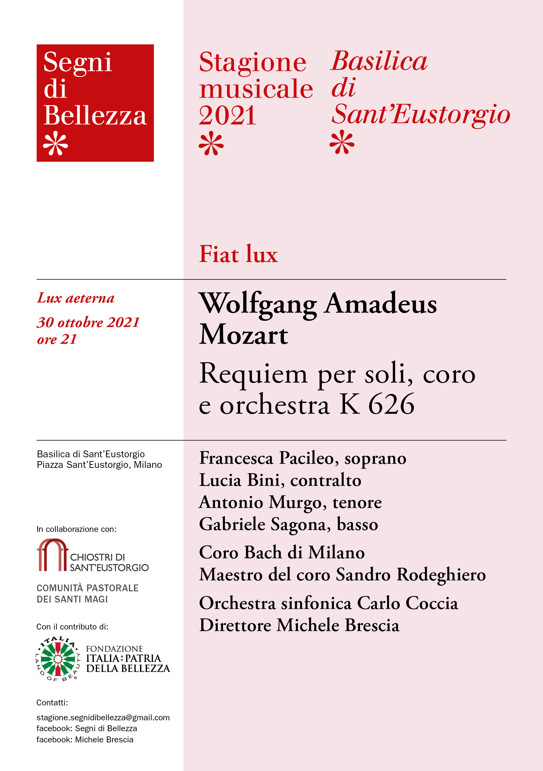 In programma l’amatissimo Requiem mozartiano per una serata che ha come tema sempre la “Luce”.