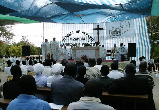 La messa, presieduta dal cardinale Joseph Medardo Mazombwe, già arcivescovo di Lusaka e nativo dello Zambia, prevedeva il saluto iniziale di monignor. Emilio Patriarca, già fidei donum in Zambia e ora vescovo di Monze. Oltre a presentare i concelebranti (una quarantina tra vescovi e preti), ha ricordato le origini della missione ambrosiana a Kariba, voluta da monsignor Giovanni Battista Montini, con il primo fidei donum don Ernesto Parenti, e ha espresso riconoscenza per il lavoro svolto in questi 50 anni.