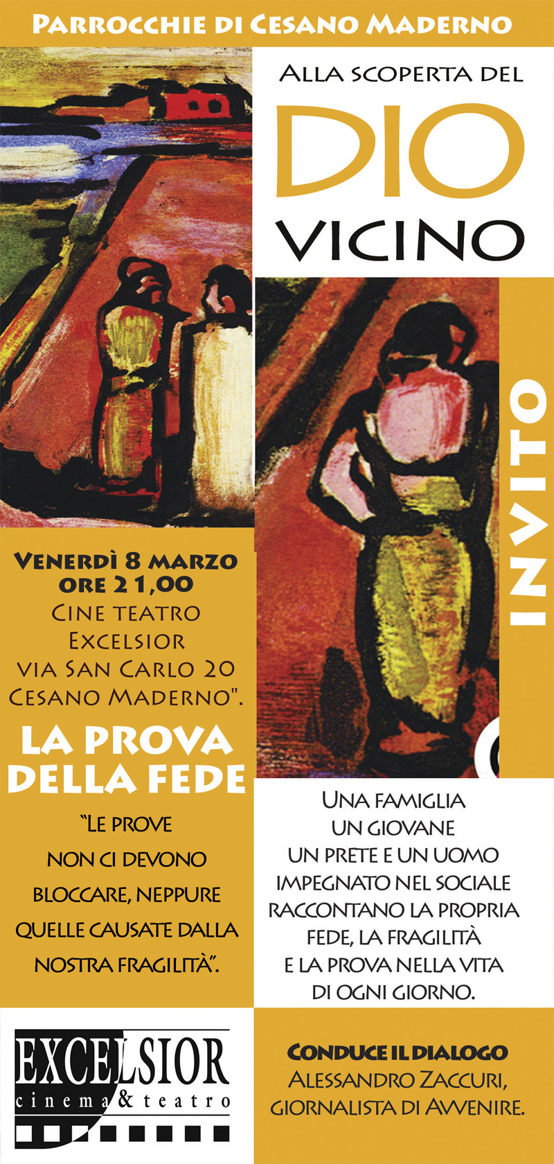 «Le prove non ci devono bloccare, neppure quelle causate dalla nostra fragilità». Con questa frase del cardinale Angelo Scola le parrocchie di Cesano Maderno danno appuntamento a tutti venerdì 8 marzo, alle 21, al Cinema&Teatro Excelsior.