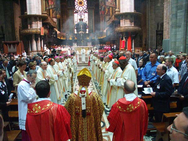 In una calda mattinata estiva, la piazza del Duomo di Milano sembrava intorpidita e alquanto distratta da quanto il grande schermo, gli altoparlanti e la tribuna prospiciente la facciata stavano a segnalare come un evento di rilievo: eppure era così perché dentro la cattedrale si levavano la voce, la preghiera, la supplica, l’intercessione e l’alleluia della cristianità del mondo.