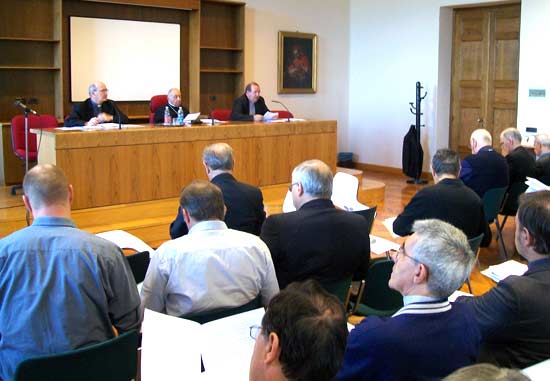Il secondo giorno di raduno dei decani è coinciso con la presentazione e il confronto sugli adempimento concreti richiesti, raccolti nel testo “In cammino con san Carlo”. Un lavoro preceduto da una forte e chiara premessa dall’Arcivescovo: «Queste iniziative proposte a tutta la Diocesi devono restare fortemente collegate con le linee ispiratrici spiegate in Santi per vocazione e non risolversi in un attivismo separato dal progetto complessivo». È toccato a monsignor Gianni Zappa, moderator Curiae della Diocesi, presentare nei dettagli le linee operative e i relativi adempimenti concreti. Sette i temi raccolti in altrettante schede: la fase battesimale dell’iniziazione cristiana, i segni concreti della carità; la pastorale vocazionale; la formazione di base dei laici; la carta di comunione per la missione; la visita alle famiglie; preghiere e gesti per il Quarto centenario della canonizzazione di san Carlo. «Queste schede non delineano iniziative straordinarie o saltuarie, bensì sono strumento per organizzare e rilanciare l’impegno pastorale ordinario», ha spiegato monsignor Zappa. «Tutti devono sentirsi e comportarsi da protagonisti in questo cammino: le comunità cristiane, i sacerdoti, gli Uffici di Curia. Ad essere protagonisti saranno in particolare i laici, il cui ruolo risulta centrale in tutti e sette gli ambiti».