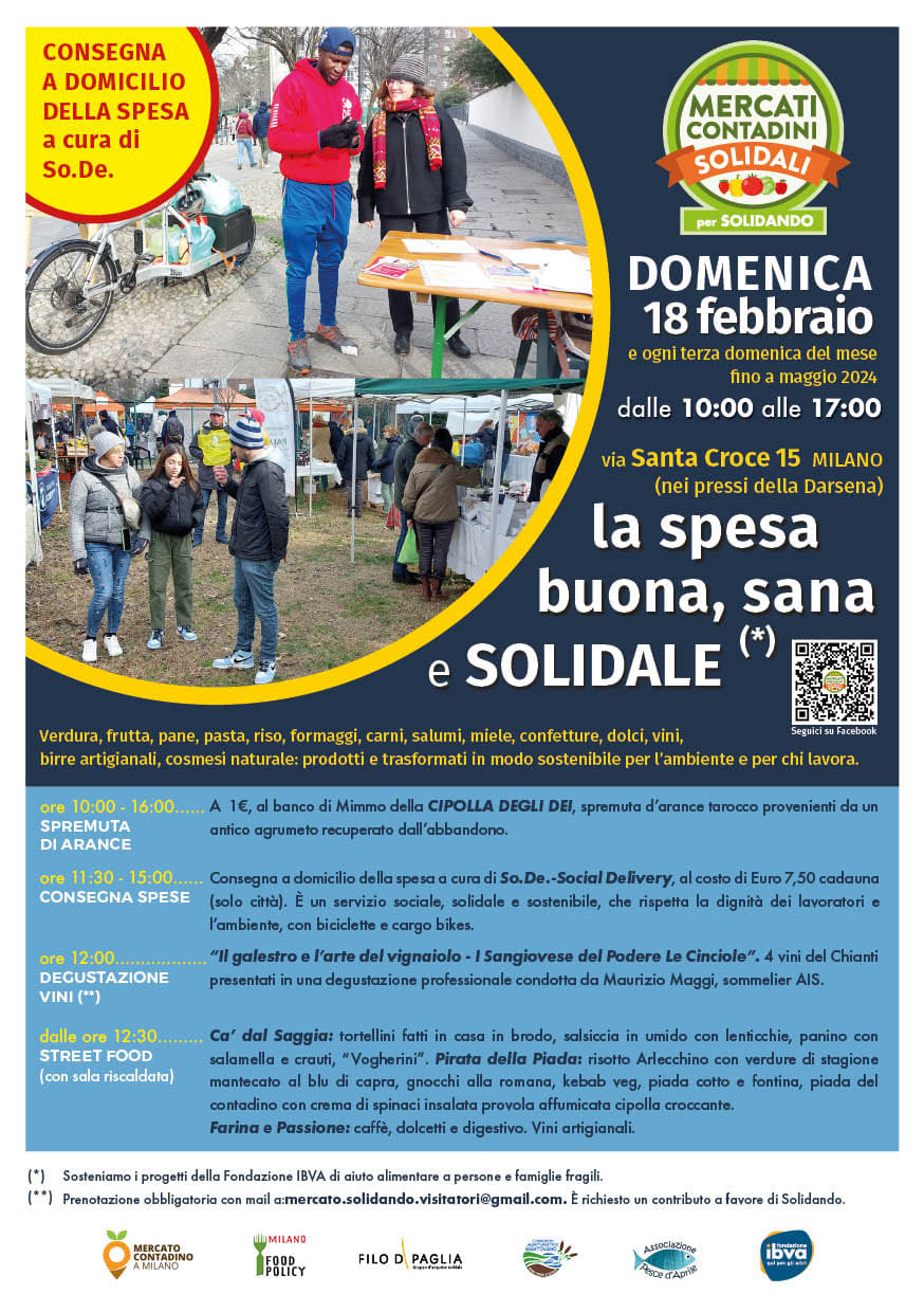 Domenica 18 febbraio dalle ore 10 alle ore 17, nuovo appuntamento con il Mercato di Solidando, in via Santa Croce 15 a Milano, dietro la chiesa di S. Eustorgio.