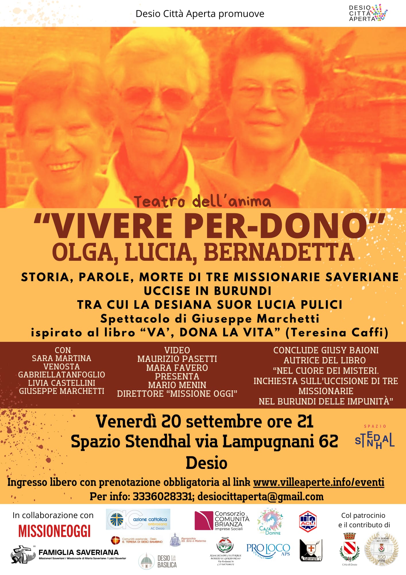 A distanza di 10 anni Desio intende ricordarle con uno spettacolo  («Vivere per-dono» di Giuseppe Marchetti, ispirato al libro “Va, dona la vita” di Teresina Caffi ) che coinvolgerà tutta la città , le associazioni, le parrocchie, l’amministrazione comunale.