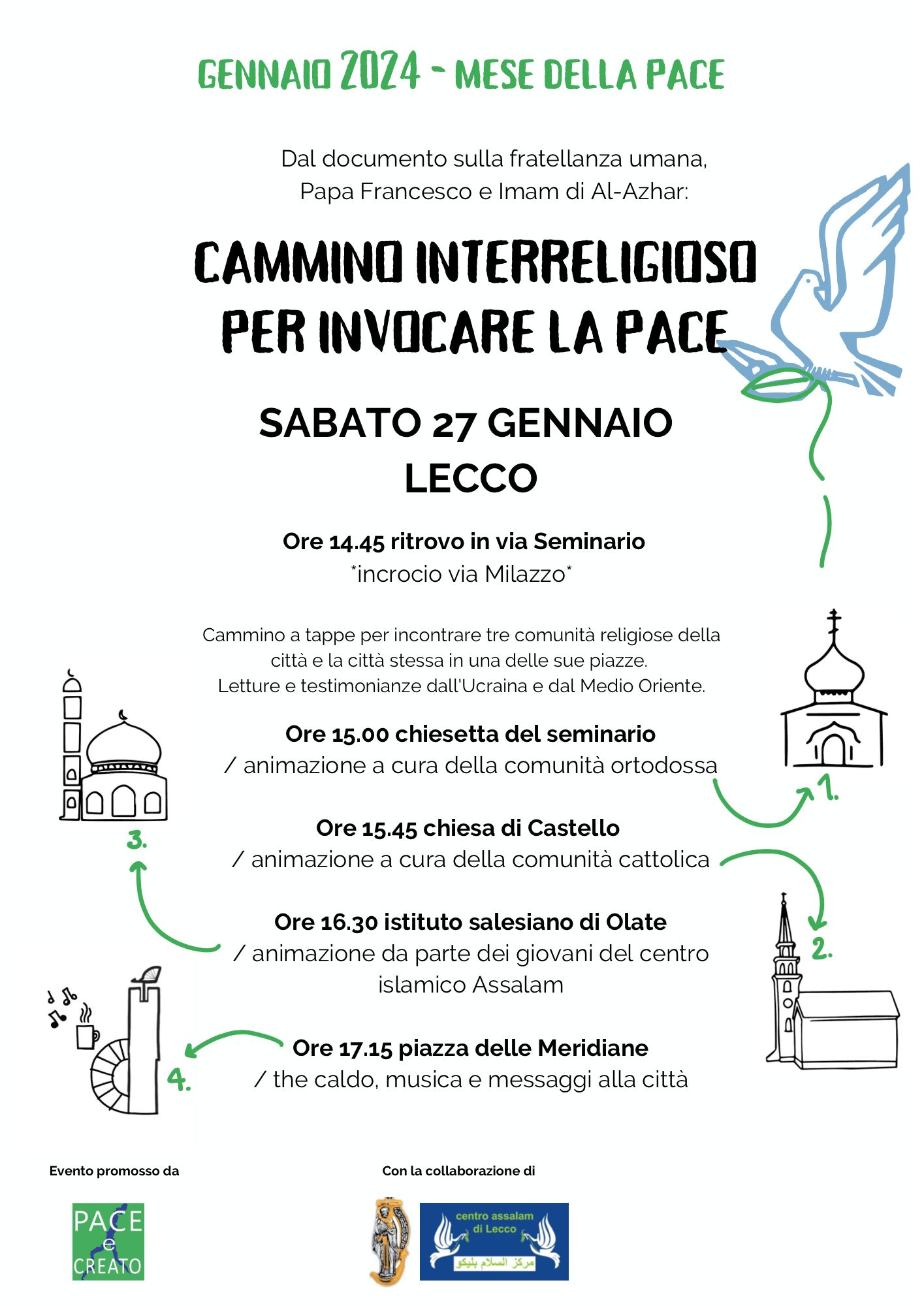 Un colorato striscione con l’immancabile colomba con un ramo d’ulivo nel becco aprirà sabato 27 il Cammino interreligioso per la Pace a Lecco.
