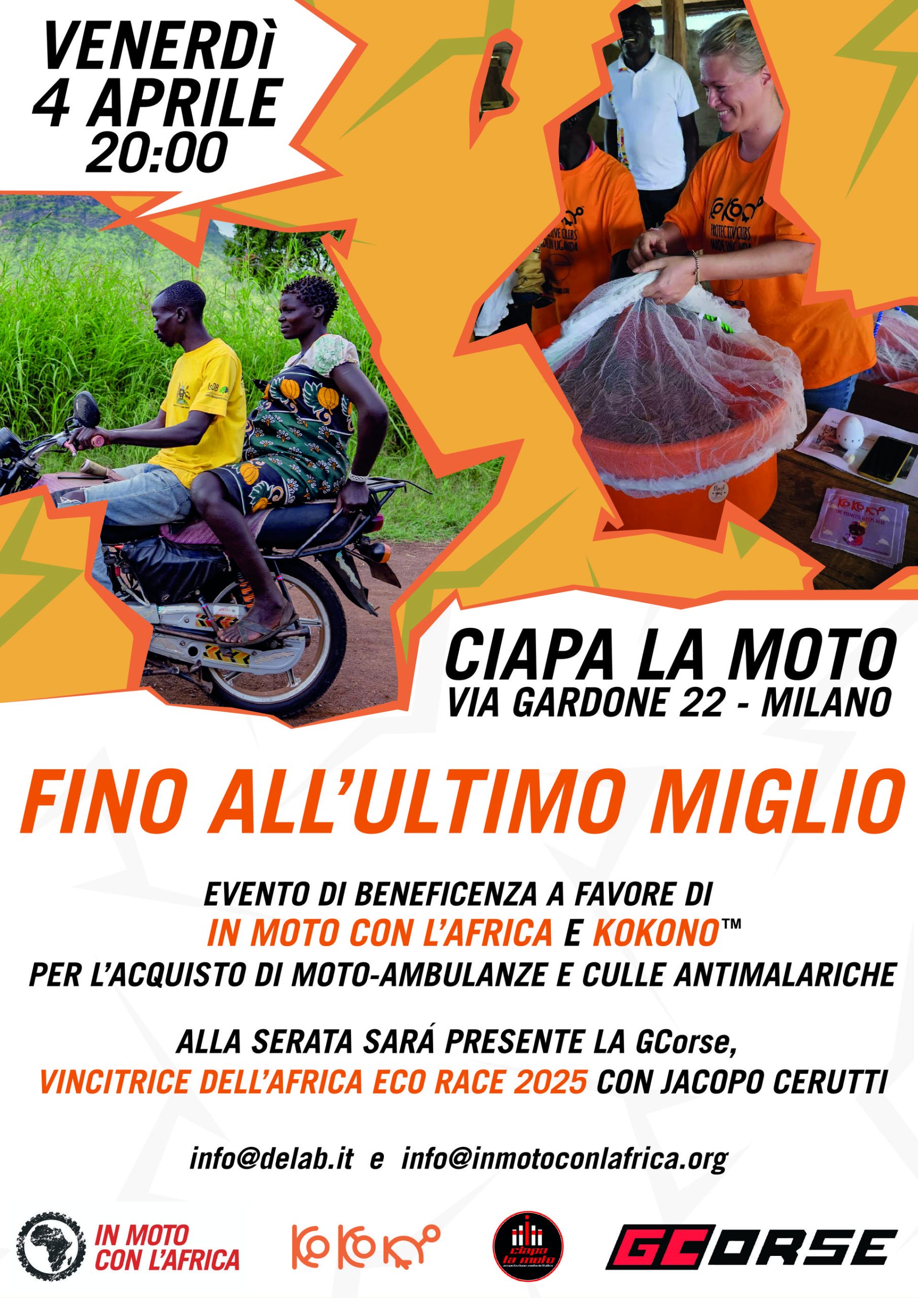 Per informazioni: info@delab.it e info@inmotoconlafrica.org