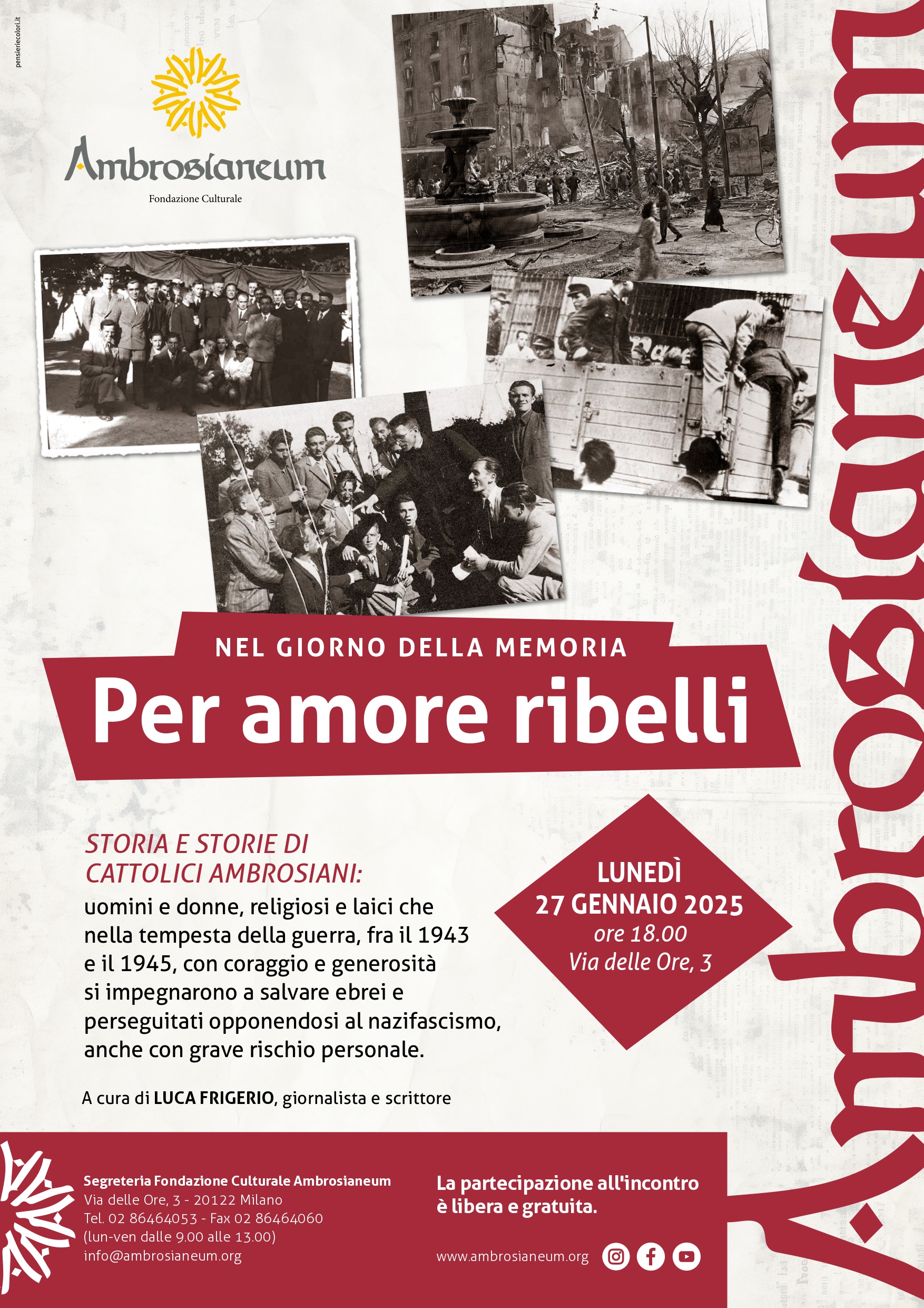 Lunedì 27 gennaio alle 18, in occasione del Giorno della Memoria si terrà l’incontro «Per amore ribelli» a cura di Luca Frigerio, giornalista e scrittore.
