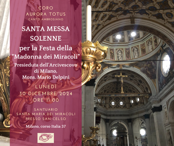 Come ogni anno il 30 dicembre nel Santuario di Santa Maria dei Miracoli presso San Celso si ricorda il miracolo che ha poi motivato la costruzione di questo maestoso tempio mariano.