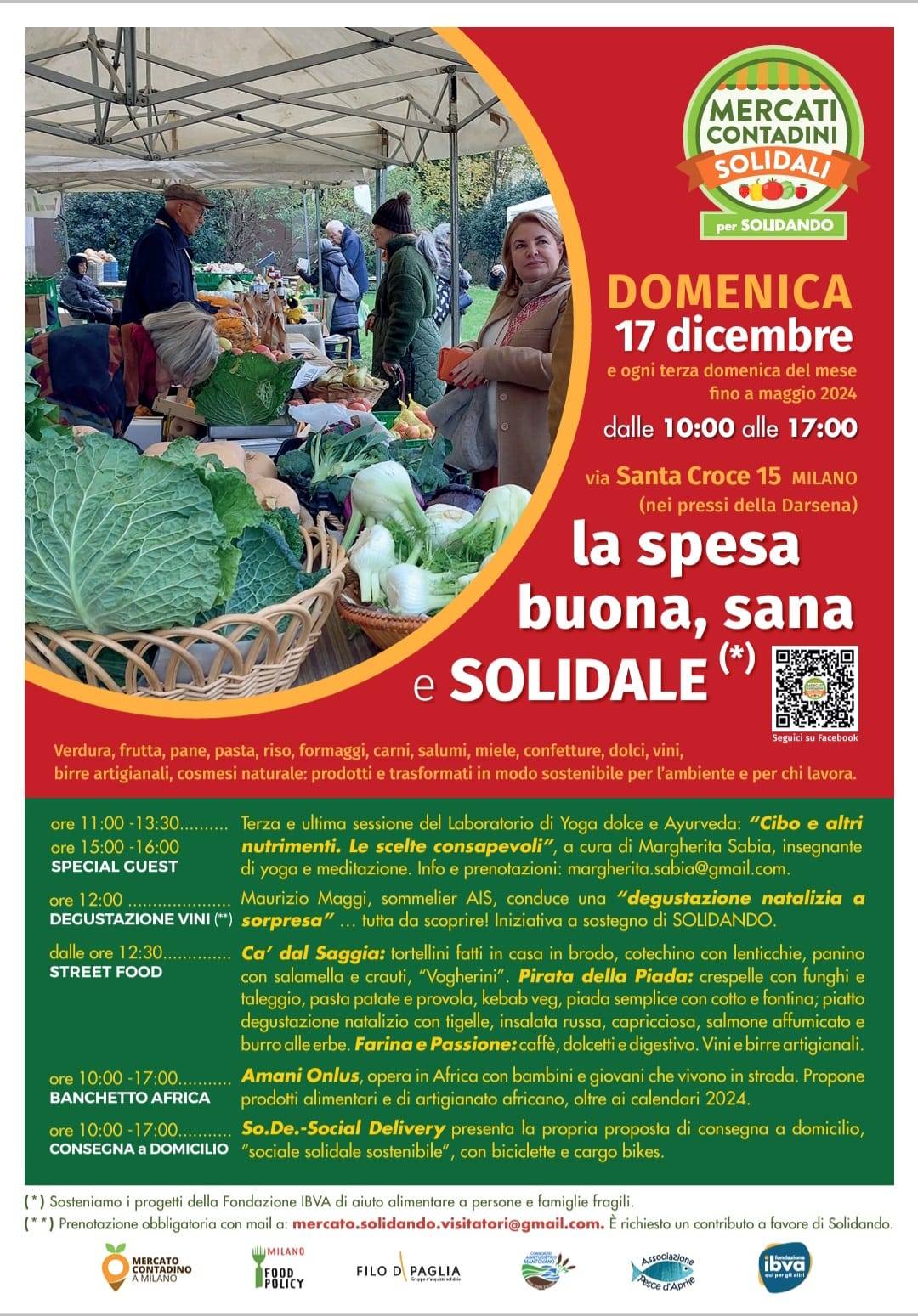Domenica 17 dicembre dalle ore 10 alle ore 17 si svolge il Mercato di “Solidando”, l’ultimo appuntamento prima di Natale.