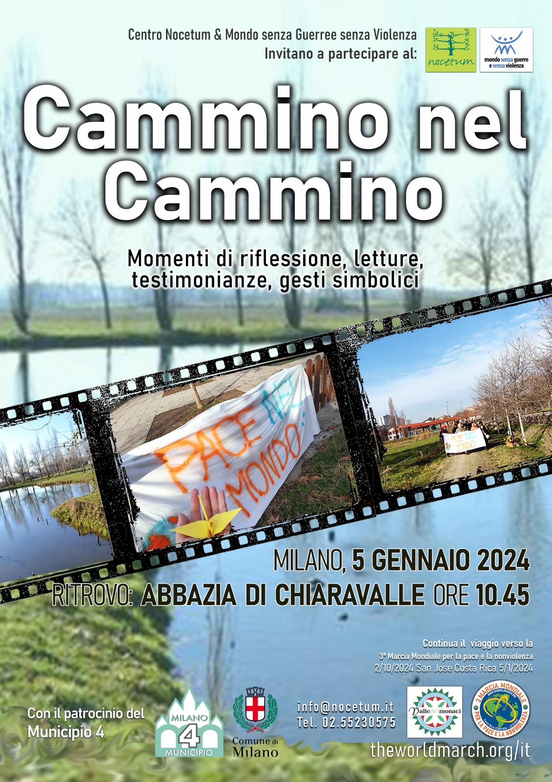 Venerdì 5 gennaio si terrà l’iniziativa Cammino nel Cammino che partirà dall’Abbazia di Chiaravalle alle 10.45 per poi raggiungere Nocetum – per una sosta – attraverso il Parco della Vettabbia e concludersi in piazzale Gabriele Rosa, attraverso alcune tappe dell’antico Cammino dei Monaci. La camminata sarà accompagnata da momenti di riflessione, letture e testimonianze sul tema dell’acqua, bene prezioso per l’Umanità.
