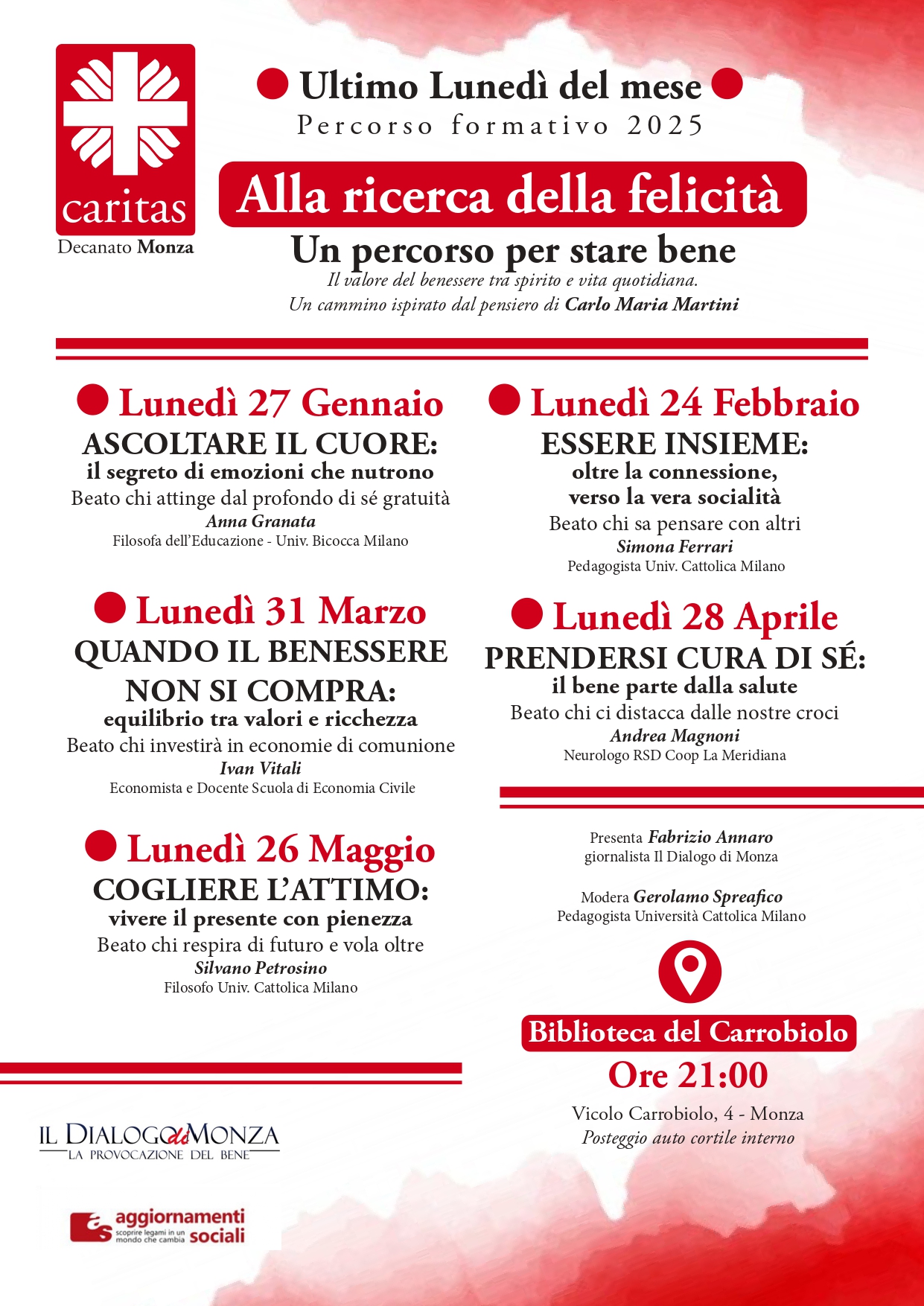 Alla ricerca della felicità. Un percorso per stare bene: è il titolo di un ciclo di incontri ispirati al pensiero di Carlo Maria Martini, organizzati dal gruppo Caritas del Decanato di Monza.