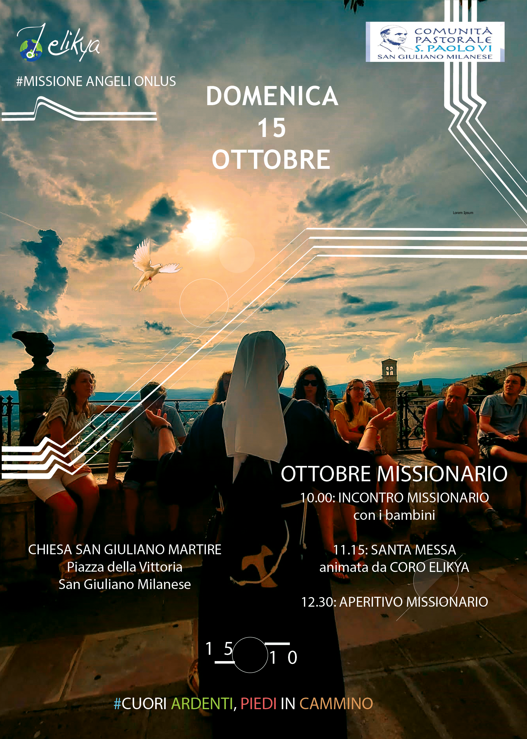Domenica 15 ottobre alle 11.15 a San Giuliano milanese, in occasione dell’ottobre missionario, Messa animata dal Coro Elikya (partner del Centro Orientamento Educativo) e un momento di convivialità fraterna con l’Aperitivo missionario al bar dell’oratorio San Luigi.
