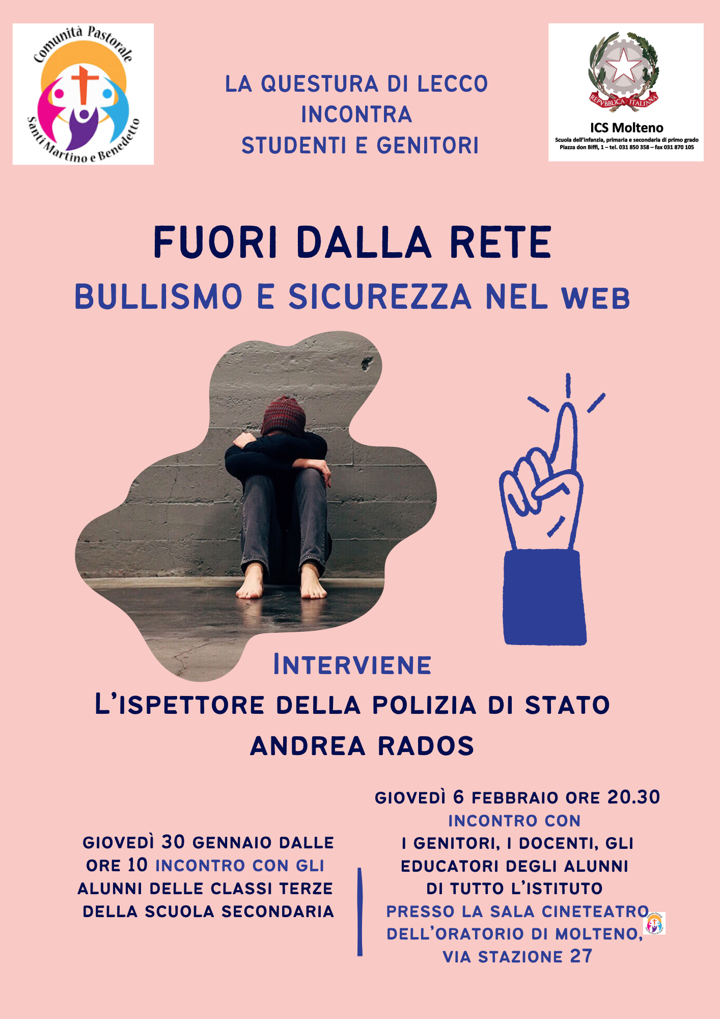 Nell’ambito della collaborazione tra scuola e parrocchia per i temi educativi, a ideale prosecuzione della Settimana dell’educazione, la Comunità pastorale di Molteno, Sirone e Brongio aderisce alla proposta di un incontro sul tema della prevenzione al bullismo e al cyberbullismo gestito dalla Questura di Lecco.