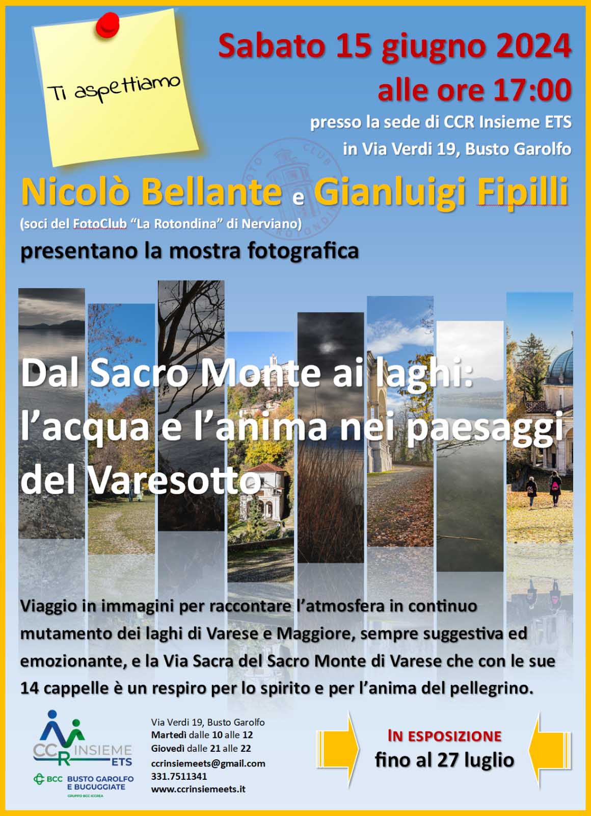 L’esposizione sarà inaugurata sabato 15 giugno alla presenza degli artisti che hanno realizzato le fotografie. Per questa occasione, la sede di via Verdi, 19 a Busto Garolfo (Mi) di CCR Insieme ETS della BCC di Busto Garolfo e Buguggiate si trasforma in una galleria d’arte. Si tratta di un’occasione unica per incontrare gli artisti e visitare con loro la mostra.
