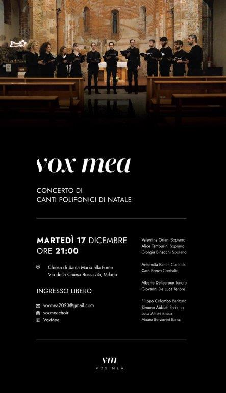 Un concerto di canti di Natale con il gruppo vocale VoxMea nella mistica scenografia della “chiesetta rossa”, Santa Maria alla Fonte, il luogo di culto cristiano più antico di Milano, dove ogni pietra conserva memoria di secoli di spiritualità e preghiera di ispirazione mariana.