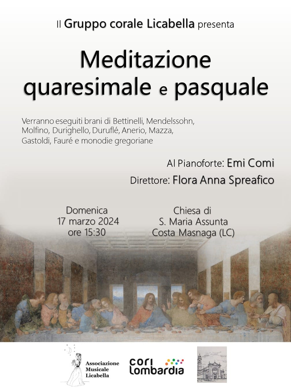 Aspettando l’arrivo della Santa Pasqua, il Gruppo corale Licabella invita tutti al concerto di Quaresima organizzato presso la chiesa di S. Maria Assunta di Costa Masnaga, domenica 17 marzo alle 15.30.