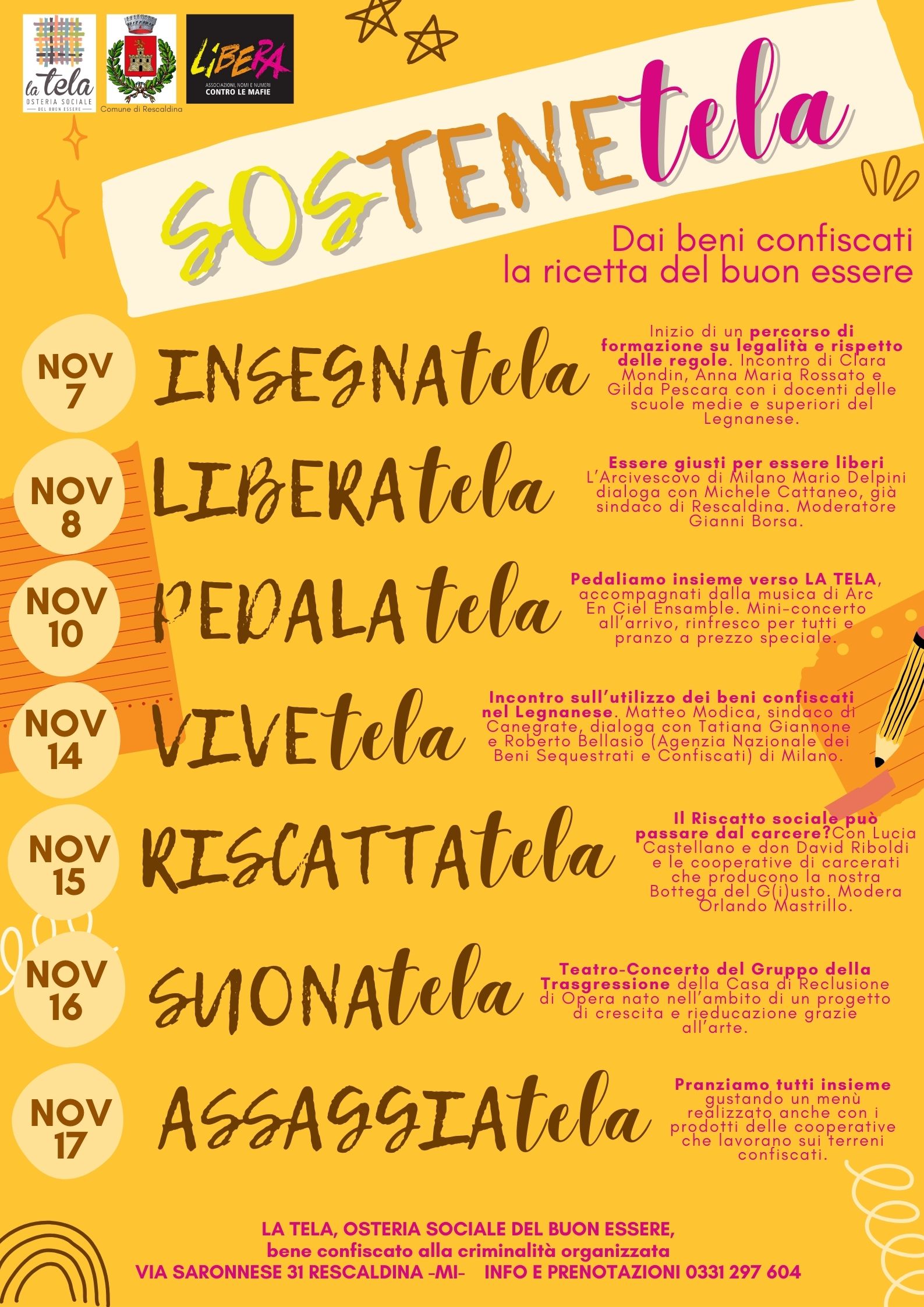 SosteneTELA è organizzata dalla Cooperativa Sociale LA TELA, da LIBERA presidio di Legnano e dal Comune di Rescaldina