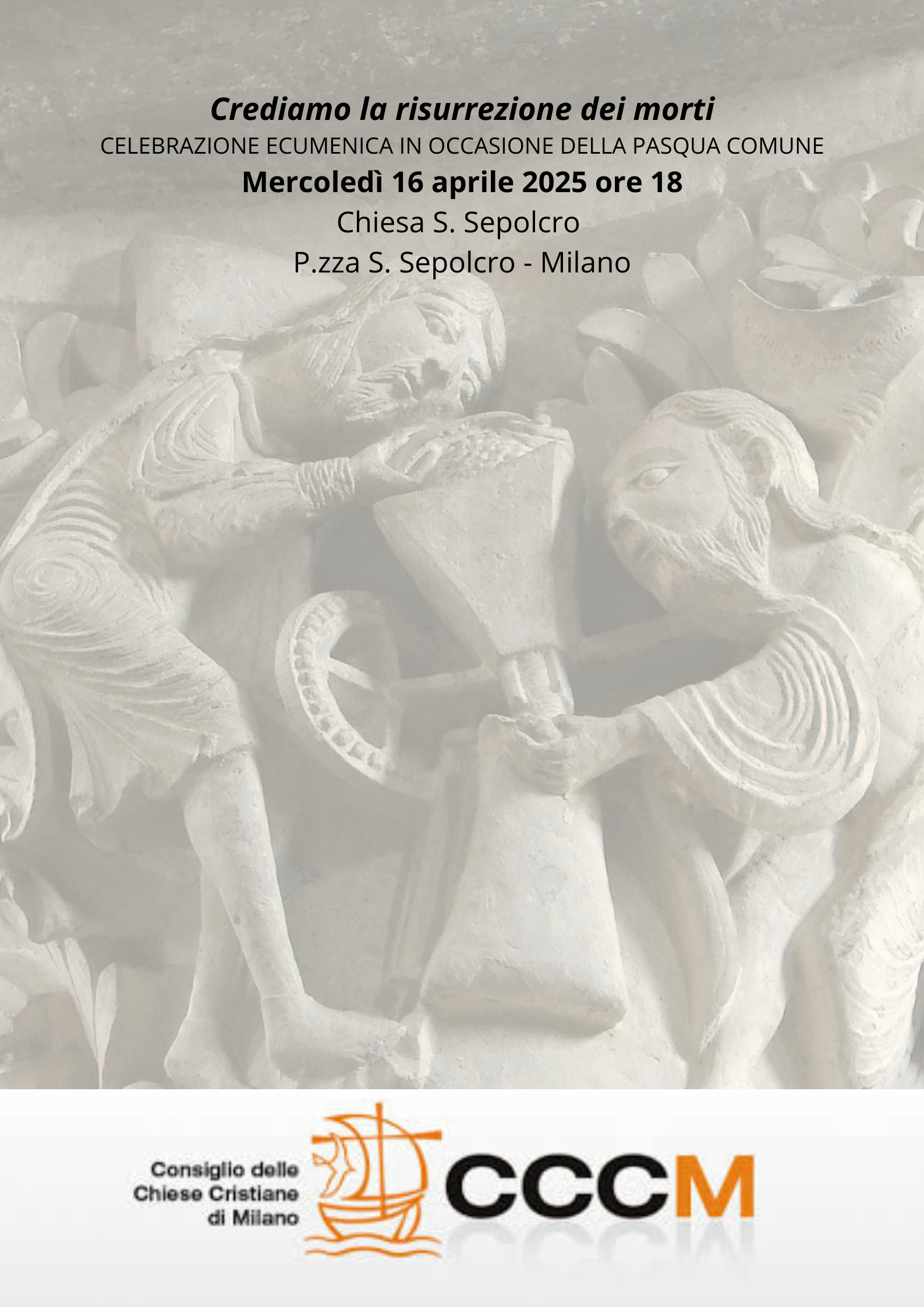 In occasione della data comune della Pasqua, il Consiglio delle Chiese Cristiane di Milano invita a una celebrazione ecumenica Crediamo la risurrezione dei morti, collocata all’interno della Settimana Autentica, che mette al centro il mistero fondamentale della Passione, morte e risurrezione del Signore Gesù.