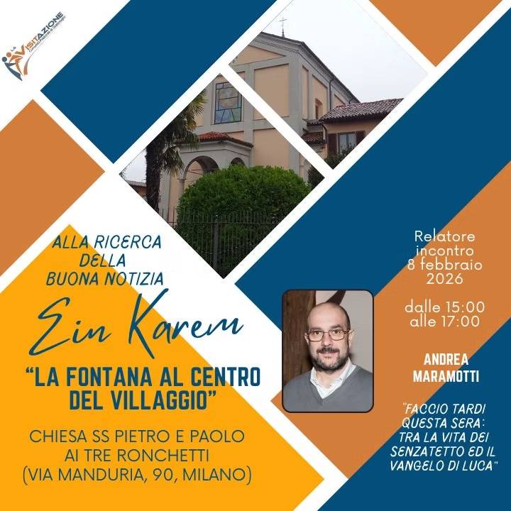Domenica 8 febbraio alle 15, presso la parrocchia SS. Pietro e Paolo ai Tre Ronchetti, in occasione della Domenica dell’Ospitalità si terrà il secondo incontro di Ein Karem.