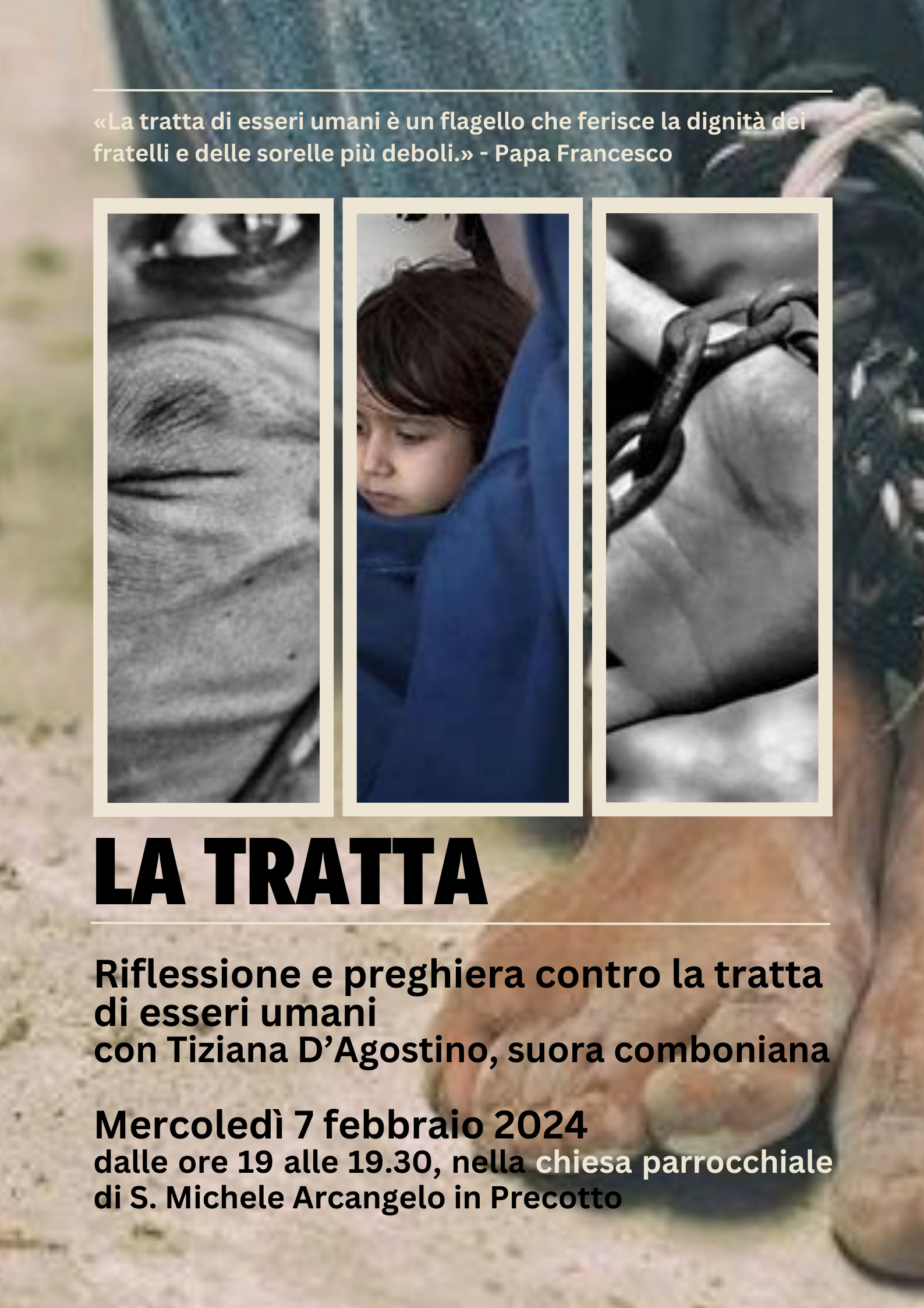 La parrocchia di San Michele Arcangelo in Precotto organizza per mercoledì 7 febbraio alle 19 un incontro per riflettere insieme sul grave problema della tratta degli esseri umani.