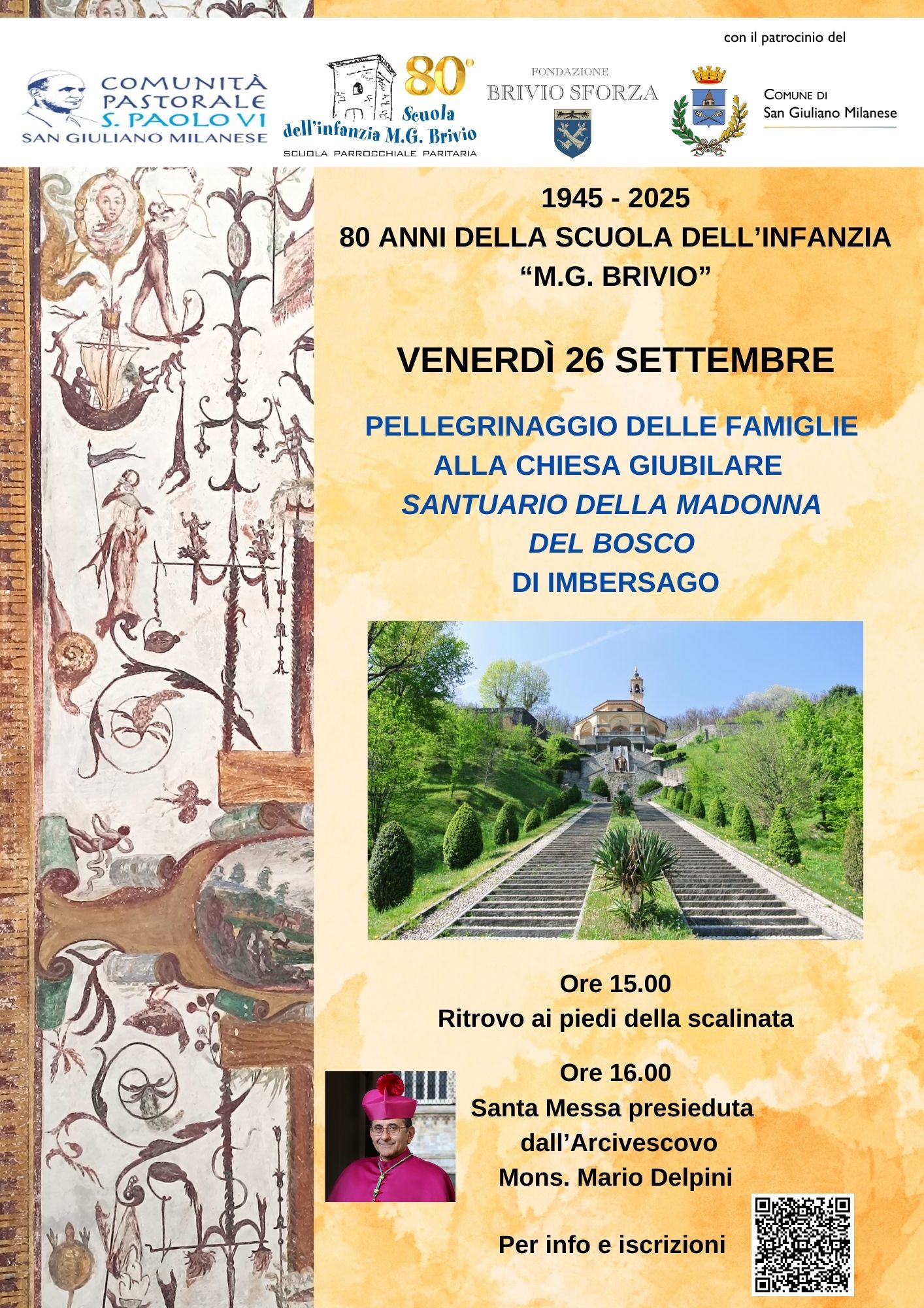 Il penultimo appuntamento sarà un’occasione speciale: un pellegrinaggio al Santuario della Madonna del Bosco di Imbersago (Lc) nel pomeriggio del 26 settembre accompagnati dall’Arcivescovo che presiederà la celebrazione eucaristica giubilare nel Santuario.