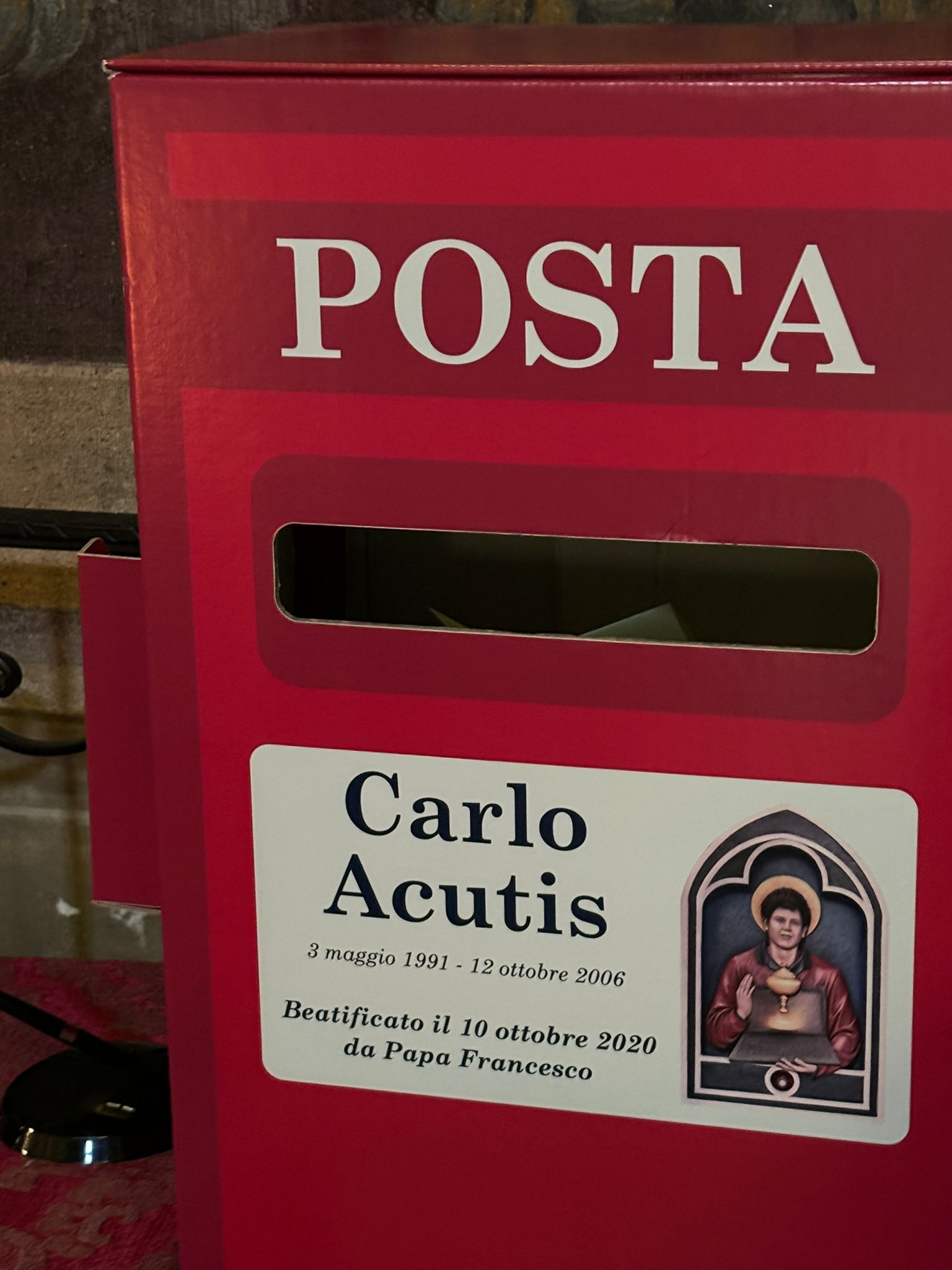 Già per il compleanno del beato Carlo lo scorso 3 Maggio nei pressi della reliquia del Beato è allestita una “cassetta della posta”, per poter lasciargli un biglietto con le proprie intenzioni di preghiera, utilizzando gli appositi foglietti (con l’intestazione “Caro Carlo, ti scrivo…”).