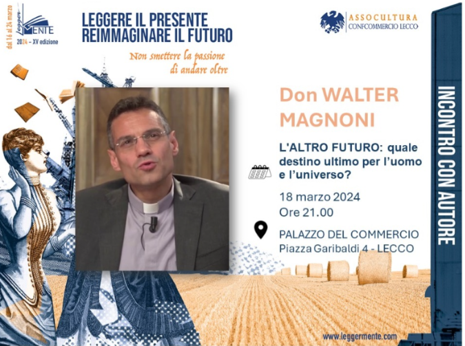 Lunedì 18 marzo alle 21 a Lecco, si terrà un incontro con don Walter Magnoni, che presenterà “L’altro futuro: quale destino ultimo per l’uomo e l’universo?”.